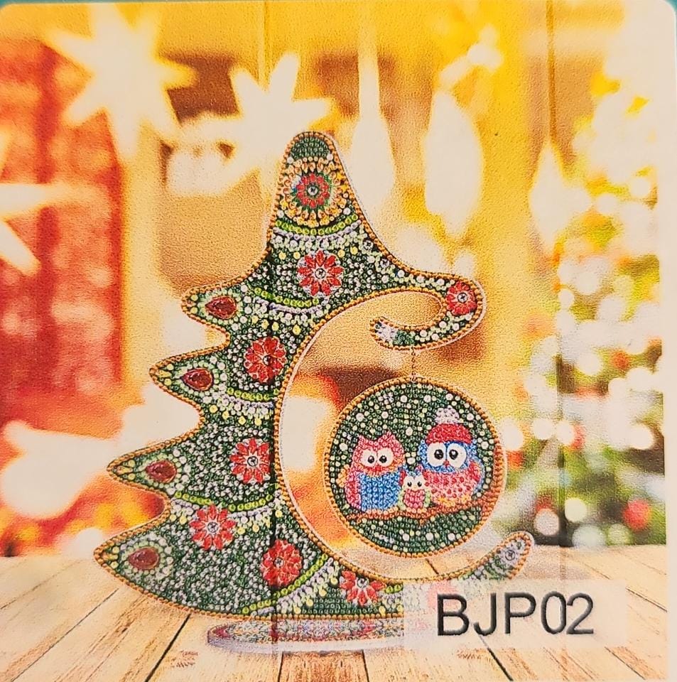 Adorno 3D de pintura diamante -Arbol navideño con búhos