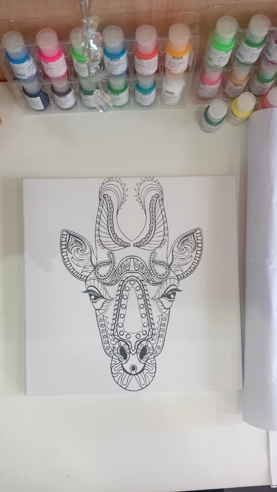 Explora tu creatividad con este hermoso bastidor con diseño de jirafa preimpreso. Esste lienzo te da total libertad para elegir tu propia paleta de colores y darle un toque único a la obra.