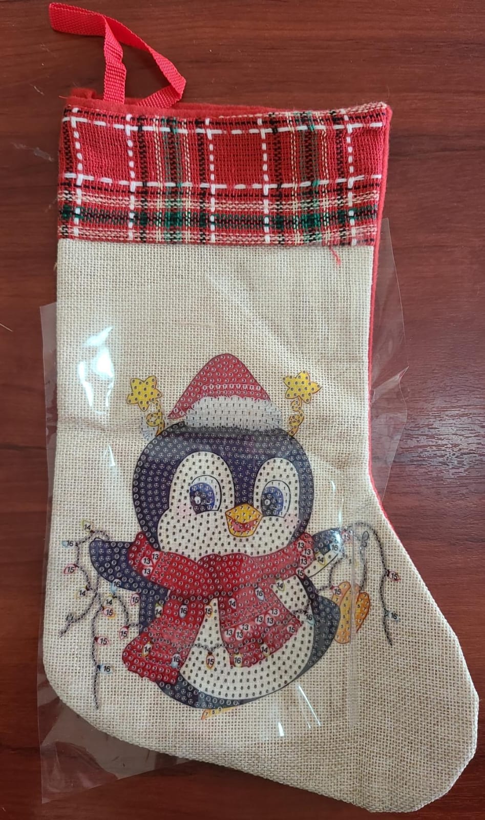 Medias Navideñas de Pintura Diamante- Pinguino navideño