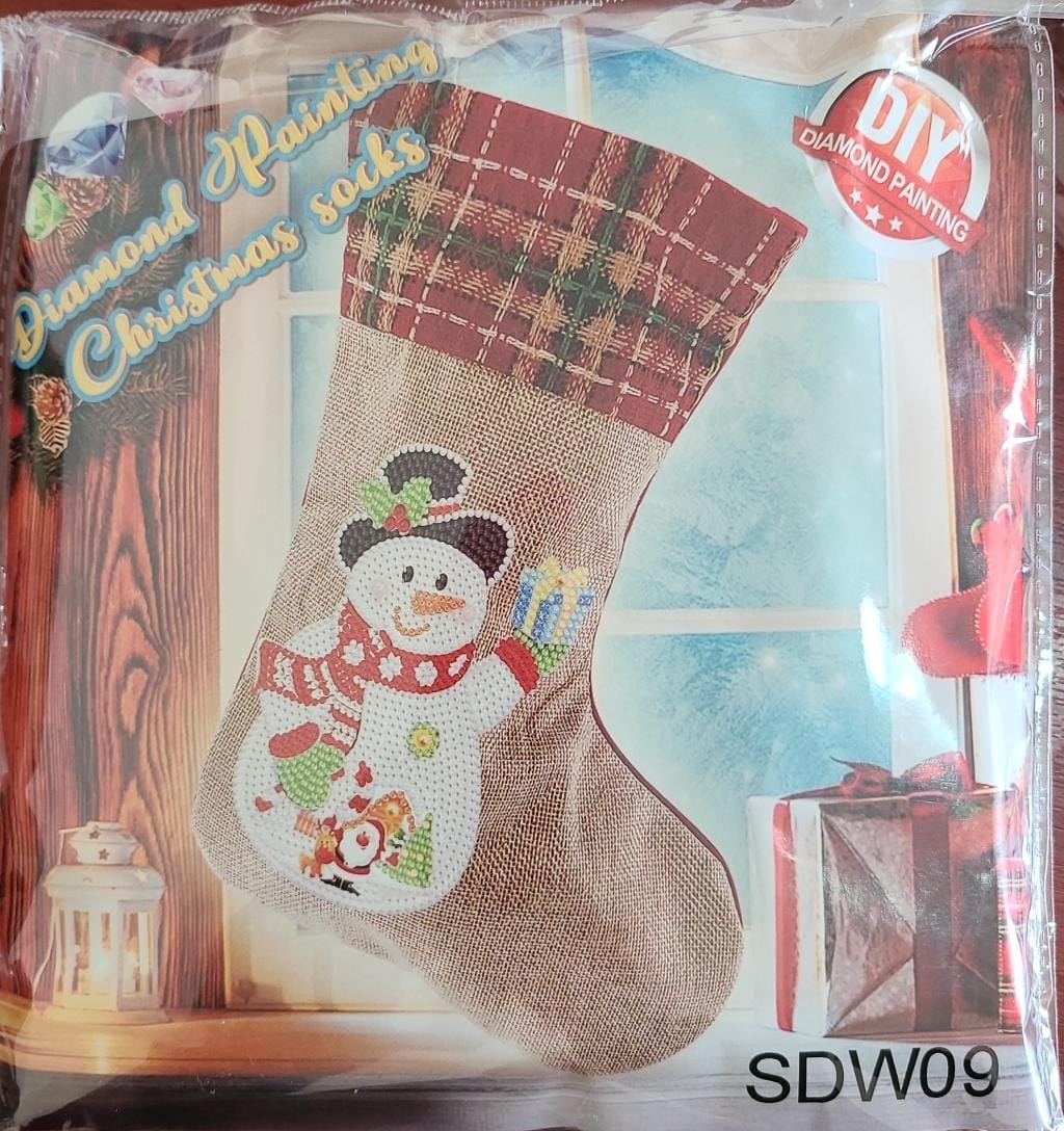 Medias Navideñas de Pintura Diamante- Muñeco de nieve