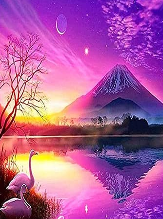 Paisaje con noche rosa - Kit de pintura diamante