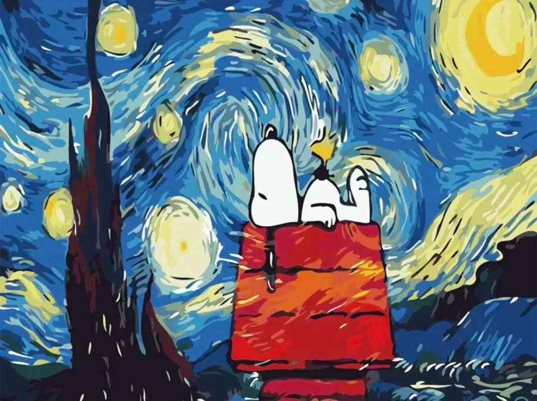 Snoopy en la noche estrellada- Kit de pintura diamante