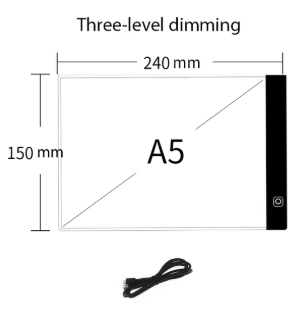 Viene con 1 almohadilla de luz LED A5, 1 soporte para almohadilla de luz, 1 cable USB